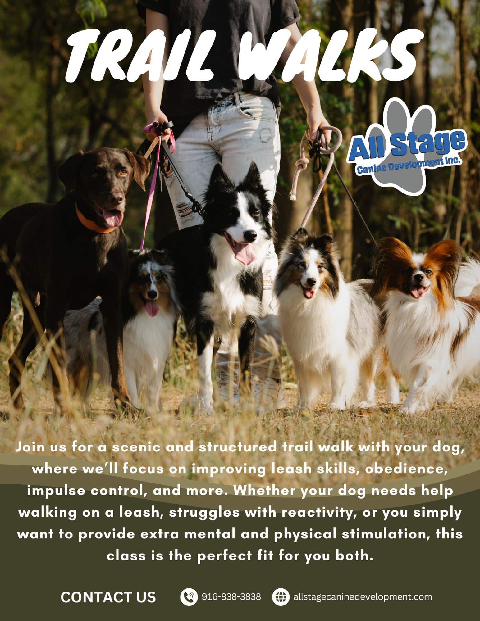 It is important to come prepared for this walk as it can be tiring if this is new to you. Please have water available for you and your pup and it might be a good idea to have treats if needed to get focus from your dog. A small snack is also often desired by the people in the class either before or after the walk.